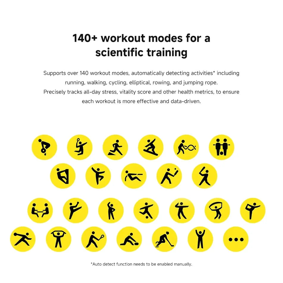 *تم اختبار عمر البطارية لمدة 18 يومًا في الاستخدام النموذجي مع الساعة: مشحونة بالكامل؛ باستخدام إعدادات المصنع الافتراضية وقرص ثابت؛ إيقاف تشغيل مراقبة النوم عالية الدقة، ومراقبة جودة تنفس النوم، ومراقبة الإجهاد طوال اليوم، ومراقبة الأكسجين في الدم طوال اليوم؛ تشغيل اكتشاف معدل ضربات القلب وإشعارات الرسائل (100 رسالة، ومكالمتان، و3 إنذارات في اليوم) يوميًا كل 10 دقائق؛ رفع المعصم لتشغيل الشاشة 200 مرة في اليوم؛ بدء تشغيل التطبيق يدويًا لمزامنة البيانات مرة واحدة في اليوم؛ 15 دقيقة من مكالمات البلوتوث كل أسبوع؛ واستخدامه لتسجيل التمارين لمدة 90 دقيقة كل أسبوع.