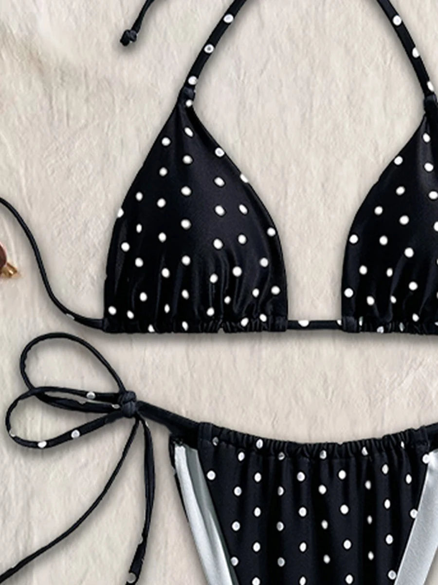 ملابس سباحة مثيرة ببيكيني صغير للنساء 2025، طقم بيكيني برازيلي منقط، ملابس سباحة بكيني بخيط رفيع، ملابس شاطئ نسائية