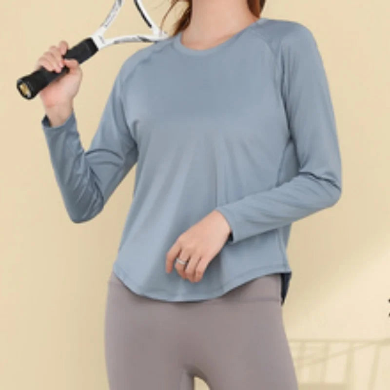 قميص يوجا نسائي بأكمام طويلة من PHIGEER سريع الجفاف وخفيف الوزن لممارسة التمارين الرياضية وملابس رياضية فضفاضة قابلة للتنفس وقميص للجري وملابس رياضية جديدة