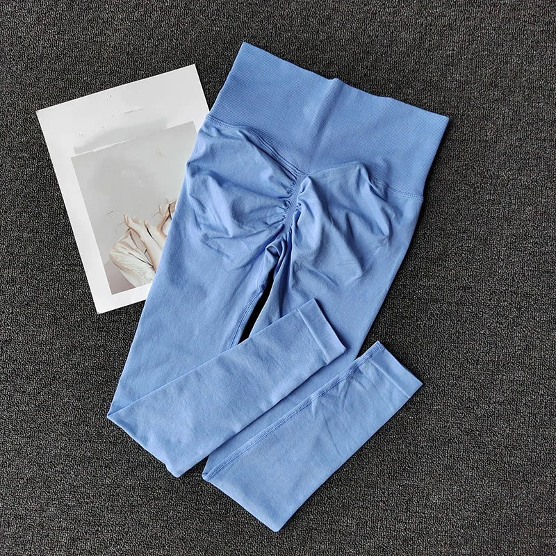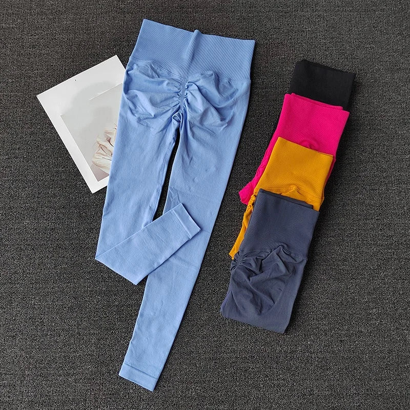 [سراويل يوجا بدون درزات] سراويل يوجا مرنة عالية بدون درزات - سراويل رياضية سريعة الجفاف للنساء - خصر مرتفع سادة R